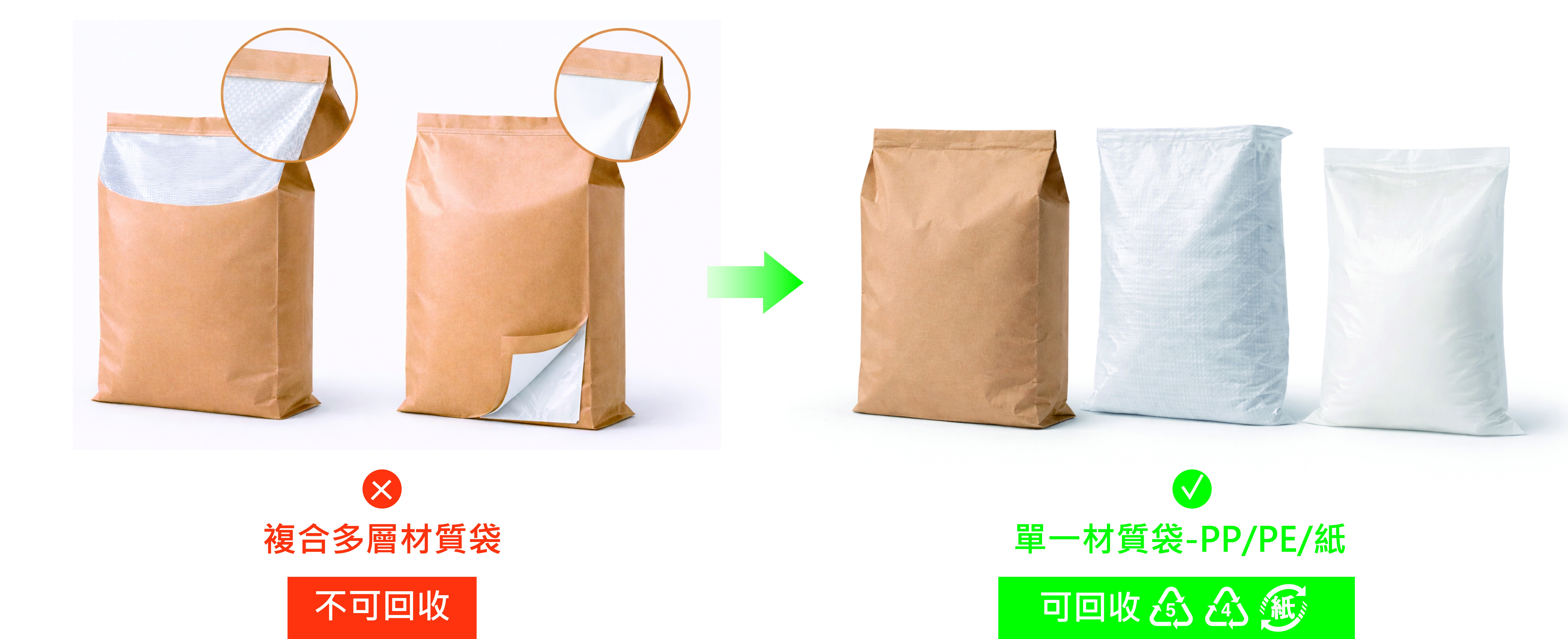 以下產品皆屬於可回收袋設計,採單一可回收材質結構,可直接進行回收,無須額外焚化處理